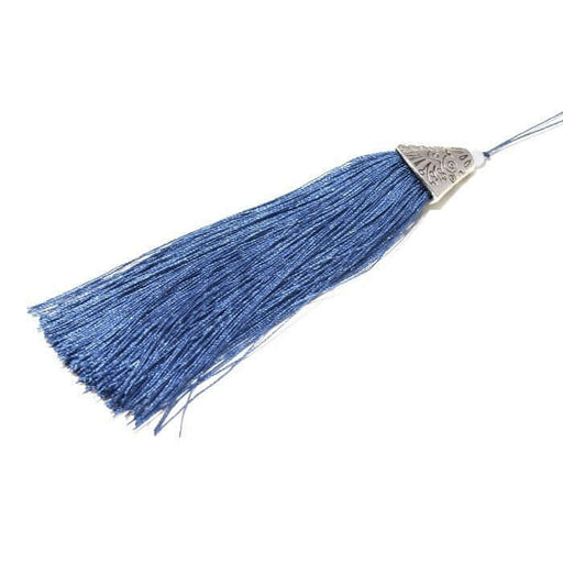 REF: 89678686,20 €| /1 steel blue pompom and antique silver tip. Size 10 cm (110x20x11 mm) - for jewelry, sewing or decoration bags, cushions,...1 steel blue pompom wit...
